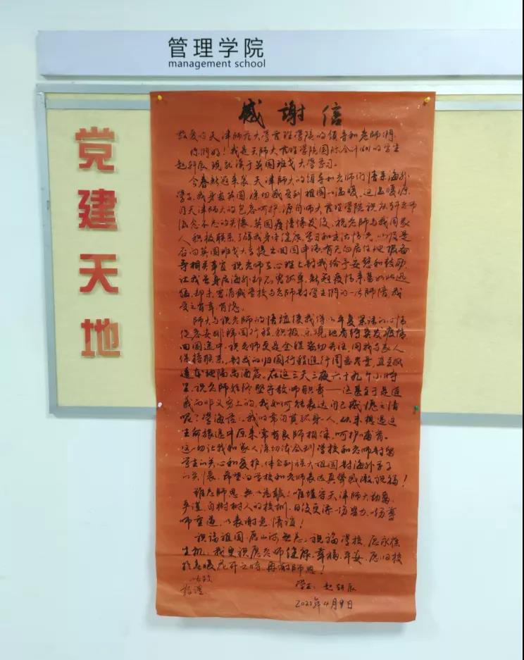 2020年国内疫情爆发之初,5名学生不能按时返回澳洲学习,他第一时间向国交学院反映学生情况,共同解决学生学业修读问题。国外疫情蔓延后,舒缓13名在英国和澳洲学生的紧张情绪,向有回国需求的学生详细了解返程路线,叮嘱路途上注意安全。他克服国内外时差和家长保持联系。在4个月的时间内,10名国际班学生陆续平安回国,得到学生和家长一致好评,其中一名学生家长为表示感谢专程从外地送来感谢信。因工作表现突出,他荣获校级“新冠肺炎疫情防控工作先进个人”称号。