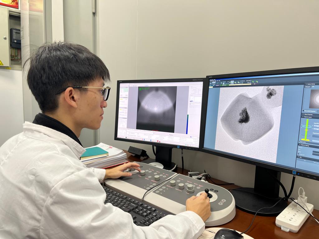 “科研如同晶体提纯,唯有过滤浮躁、潜心钻研,才能萃取出问题的本质。”谈及读研的心得,温浩明这样总结道。2022年,温浩明继续攻读本校的化学专业理学硕士学位,基于对学科的热爱,他选择深耕无机化学的微观研究领域。研一暑期,他在实验室连续三个月尝试合成新型纳米材料,然而产物形貌始终未达预期,在凝视透射电子显微镜下的异常产物时,他一度对自己的研究方向产生怀疑。直至在导师贺鸿明的建议下,他系统研读近五年合成领域文献,通过追根溯源地分析,才发现反应过程中的滴加速度与温度控制是改善产物形貌的关键因素,一张张透射电镜图记录着他每一个深夜处理实验数据的时光。“读研这几年,我最大的收获并非合成出某种新材料,而是学会思考问题本质并解决问题。”他说道。