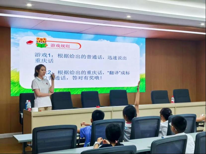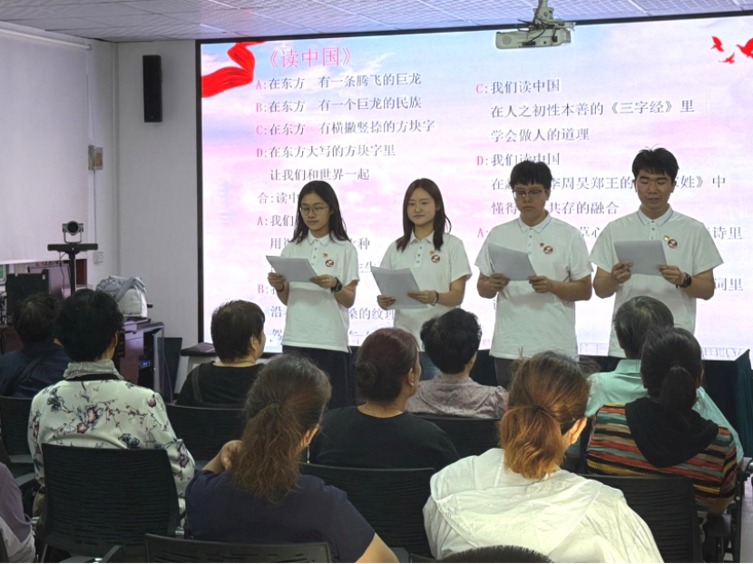使命践行:构筑民族同心桥为积极响应共青团中央关于“三下乡”社会实践的号召,发挥青年力量助力乡村振兴,研支团全员参与2025年“三下乡”暑期社会实践活动,组建的“津师普语西行,数字推普兴乡”志愿服务团队入选全国重点团队。他们前往新疆、甘肃、重庆三地的4个社区以及甘肃省博物馆,开展形式多样的普通话推广活动。在甘肃省博物馆里,成员们在文物鉴赏中触摸文明根脉,在红色研学中汲取精神力量,以普通话为载体,让历史“诉说”与革命的“故事”;在社区里,成员们将方言与普通话相对照,用小故事引出“学好说好普通话”的大道理,增添绕口令、“我是小小讲解员”等趣味推普课堂,同时辅以数字语博体验等多元活动,形成一堂堂“推普”思政课,在推广普及国家通用语言文字的过程中帮助孩子们铸牢中华民族共同体意识。