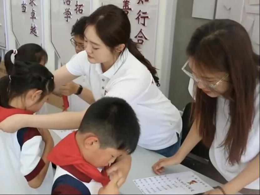能力提升:锤炼教书育人本领研支团成员们前往beat365中文版官方网站附属实验学校开展为期五个月的沉浸式教学实习,通过跟班听课备课、课堂实战试讲、班级精细化管理等环节,成员们在一线教学的熔炉中,系统掌握了提升课堂效能、优化教学方法、构建和谐师生关系、强化班级凝聚力的核心技能。实习期间,研支团创新实践“团建带队建”模式,精心策划开展“红领巾心向党•团徽闪耀助成长”队前教育系列活动,特别是面向一年级新生设计的“入队知识大闯关”和常态化的“红领巾小课堂”,成为培育少先队员行为规范、厚植爱党爱国情怀的重要载体,让红色基因和党团队一脉相承的信念在幼小心灵中生根发芽。这段宝贵的实习经历,为成员们奔赴西部讲台施展才华打下了不可替代的实践基础。